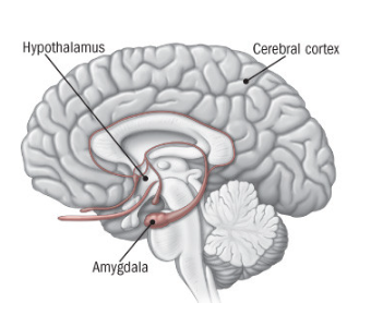 If you experience a stressful event, the amygdala, the area of the brain that contributes to emotional processing, will send a warning signal to the hypothalamus. The hypothalamus functions like a command center, and communicates via the nervous system to the rest of the body, enabling a person to have the enhanced response to fight or flee (flight).